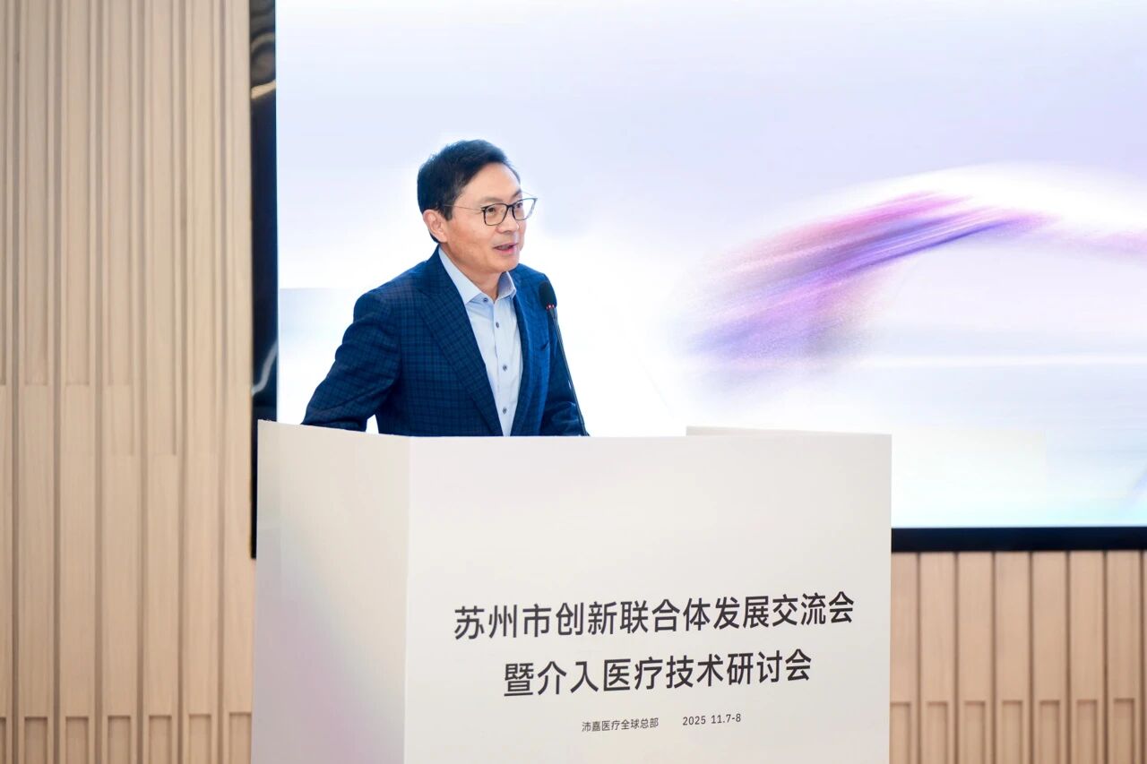 沛嘉医疗董事长兼CEO张一代表沛嘉医疗致欢迎辞,作为苏州生物医药领域首个生态融合型创新联合体,苏州市介入医疗技术创新联合体由沛嘉医疗科技(苏州)有限公司牵头组建。其构建形成了“龙头企业引领+上下游创新型企业参与+科研机构联合攻关+孵化器培育+投资基金支持”的运行模式,着力打造了集技术攻关、平台建设、企业孵化、成果转化、产业培育、人才引进与临床医学服务为一体的产业创新生态。“整个过程中孵化了不少企业,也给苏州带来了一批创新医疗器械。”张一表示,沛嘉医疗见证了联合体从无到有,未来一定会实现空间上集聚、创新上集成、产业上协同,孵化出更多创新产品、优质项目,助推区域高端医疗器械产业高质量发展。